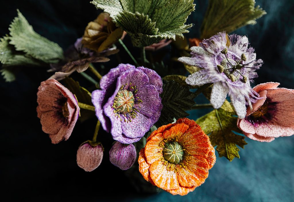 “The installation brings together a range of craft practices, including ceramics, textiles, glass, and print. Each work draws on flowers or material intelligence rooted in the natural world, carrying the essence of growth, care and imagination. Presented in the dining room, the works blur the boundaries between use, display, and exhibition, inviting reflection on craft and its role in moments of gathering, conversation, and exchange.” Dr Loucia Manopolou