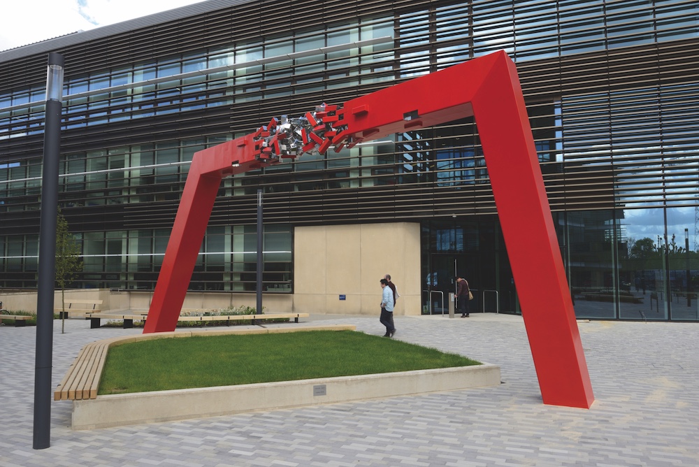 One way Julian does this is with colour. “People have said the reds and purples and yellows in my work are unnatural,” he says. “There is this thing in sculpture called ‘truth to material’, where people expect you to leave rusting metal rust-coloured, or stainless steel silvery. It is easy to make everything tone down and fit into the English weather and landscape, but I want to do the opposite. I want my work to stand out. Like pillar boxes and red phone boxes. People and things get lost in the landscape, so I’m constantly fighting with the environment to make the work stand out, or recede, or do different things. Look at azaleas and rhododendrons! You see these intense colours in nature that can be in a flower or bright green grass in spring. Yellow can be a JCB or ragwort or a sunflower.”